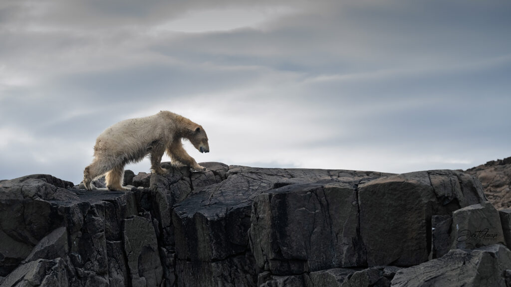 As ice melts due to climate change, polar bears are forced to travel longer distances in search of food.